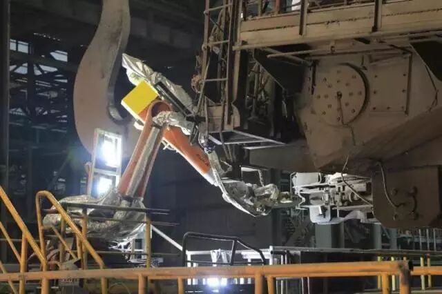 首先小鋼板懷著憧憬與好奇來到寶山基地?zé)掍搹S采訪,只見投產(chǎn)于2004年的3號(hào)連鑄機(jī)身邊多了四位機(jī)器人幫手——1臺(tái)鋼包受包側(cè)機(jī)器人、1臺(tái)中間罐區(qū)域機(jī)器人和2臺(tái)結(jié)晶器保護(hù)渣機(jī)器人。他們同時(shí)在產(chǎn)線上操作,即使在小鋼板采訪他們的時(shí)候,手中的工作也沒有停止,手法依然熟練而又穩(wěn)重:“我們現(xiàn)在已日臻成熟,不僅能夠極大減輕一線澆鋼員工的工作強(qiáng)度,杜絕由于人工操作造成的失誤,并且還能降低人與設(shè)備之間的交互,消除安全隱患,大幅提升本質(zhì)化安全,甚至有效提高了板坯的實(shí)物質(zhì)量。”小鋼板了解到,正是這四臺(tái)左膀右臂,讓3號(hào)連鑄機(jī)成為目前國內(nèi)最先進(jìn)、最智慧化的連鑄機(jī)。
