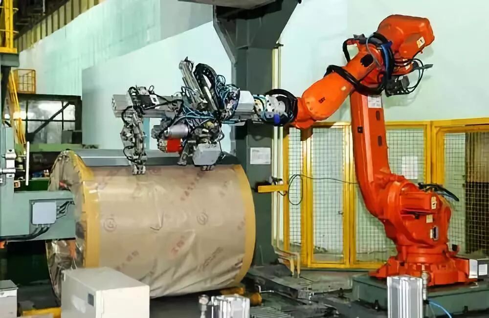 讓我們把鏡頭切換到寶鋼股份冷軋廠1550產(chǎn)線的B跨廠房,只見兩只機(jī)械手臂以連貫動(dòng)作,抽帶、接帶、打捆、剪帶……短短兩分鐘不到的時(shí)間,捆帶已經(jīng)整整齊齊地固定在了鋼卷上。一氣呵成、干凈利落的動(dòng)作令人嘆為觀止。這兩臺(tái)外形亮眼的橘紅色機(jī)器人,正是今年3月剛完成功能考核的C213自動(dòng)包裝機(jī)組。
